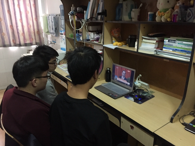学院还要求学生通过各种渠道观看“两会”相关新闻评论,并以“我看两会”为主题组织开展“党员议事”活动。学生党员应志鸿说:“政府工作报告涉及了很多民生的事情,我特别关注生态文明建设,希望今后治水治气效果更好,霾更少,天更蓝,水更清。”学生党员奚彬轩说:“为了能够更好的了解两会,特地上网查阅了资料,把政协会议和人大会议的历史学习了一遍,收获很大。”学院学生党员之家主任李君香说:“看了《东方时空》转播的工信部部长关于打击网络诈骗犯罪的行动和数据的介绍后,特别兴奋,希望国家可以加大对网络诈骗的打击力度,也希望我们的同学可以多关注相关的新闻,提高警惕,不要相信天上掉馅饼的事情,不要陷入网络诈骗的陷阱。”
