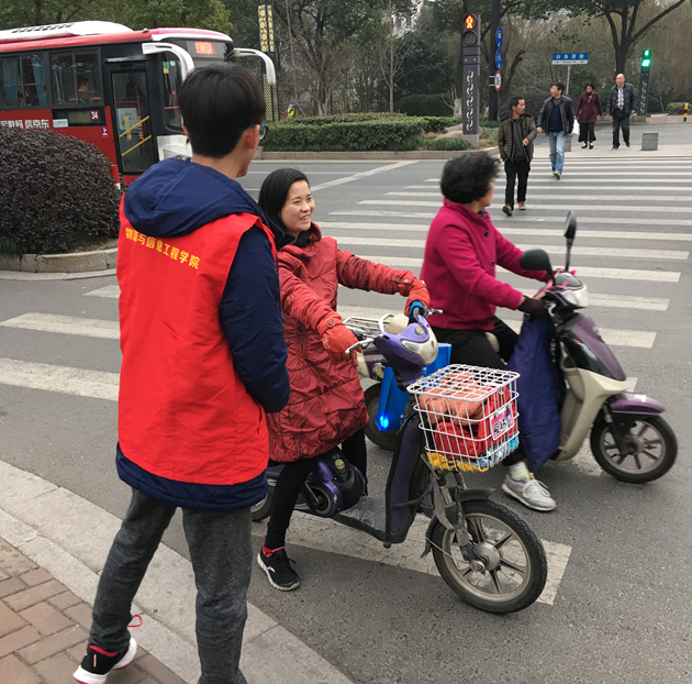 文明出行志愿者。3月4日下午,物流与信息工程学院35名志愿者在龙泉街道内不定点进行志愿交通劝导服务。对市民不走斑马线,非机动车、机动车斑马线不礼让、不按道行驶、乱停乱放,摩托车不戴头盔、超员行驶等不文明交通行为进行劝导;在公交车站台主动引导乘客文明排队、有序乘车,提倡不挤、不抢,营造学雷锋、讲文明的社会氛围。文明交通志愿者们热情友善、彬彬有礼的举动,得到广大市民的认可与支持,俨然成了街头的一道靓丽的风景线!