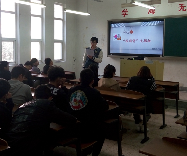 各班下发并讲解了校园贷诈骗典型案例汇编,还以PPT的形式生动的向学生阐述了校园贷的危害、校园贷的前世今生,帮助学生加深了对校园贷的认识,并引导学生要找准自身定位,意识到消费不能替代学业、攀比无助进步,从而树立合理的消费理念;提醒学生要提高金融和消费领域的敏锐性,对于校园贷要有充分的警惕性。在细致的讲解后,各班发出了“远离网络贷款•谨防网络诈骗”的倡议,各班班主任和学生还都进行了签名承诺活动。