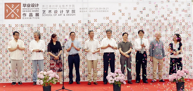 经过2个月紧锣密鼓的筹备,6月9日上午,艺术设计学院2017届学生毕业设计作品展在6号楼一二层连廊举行。校长沈建民、副校长丁继安、校纪委书记吴海燕,创业学院院长、督学胡世明、湖州师范学院艺术学院院长张新江及校党委组织部负责人、艺术设计学院党政负责人、师生代表参加开幕式。