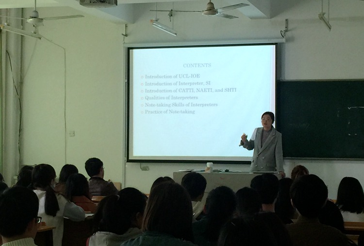 3月30日下午,商务英语教研室全体教师以及商务英语专业2016级学生共同聆听了一场别开生面的企业案例分享会。在会上,来自湖州沃顿翻译服务有限公司的资深译员葛春萍女士向在场的师生介绍了外事接待口译的礼仪、技巧以及注意事项。并与广大师生分享了沃顿公司在承担“国际乡村旅游大会”、“国际化妆品领袖峰会”以及“世界木地板大会”等国际性会议的外事接待口译工作的成功案例。鼓励师生积极对接企业行业,服务地方,为区域特色产业发展和专业发展注入新的活力。