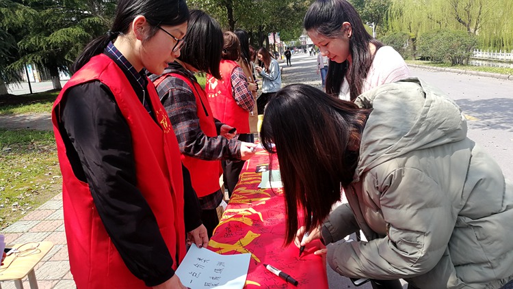 3月23日,第二十六个“世界水日”之际,学院志愿者在学校食堂门前开展了“垃圾分类多一步,校园文明一大步”横幅签名宣传活动,大力推进公寓生活垃圾分类工作,努力倡导“绿色寝室,低碳生活”科学理念,向来往的学生们宣传正确垃圾分类、低碳环保的理念,萌发学生的环保意识,爱护环境的习惯和自觉性,倡导环保无小事,应从身边小事抓起。同时还现场征集100余条垃圾分类宣传口号活动,群策群力把“垃圾分类”的正确理念带到同学身边。
