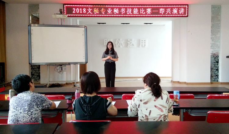 本次比赛由计算机中文速录、主题和即兴演讲、PPT美化三部分组成,设置综合奖和单项奖等奖项。比赛现场选手们发挥出色,充分展现了文秘专业学生的风采。经过几轮角逐,文秘1701董菲、文秘1702陈莞君、文秘1701郑诺颖同学获得综合奖一等奖、二等奖和三等奖;文秘1701黄明明、张乐娅、文秘1702朱琼梦等获得PPT制作、演讲和文字录入单项奖。