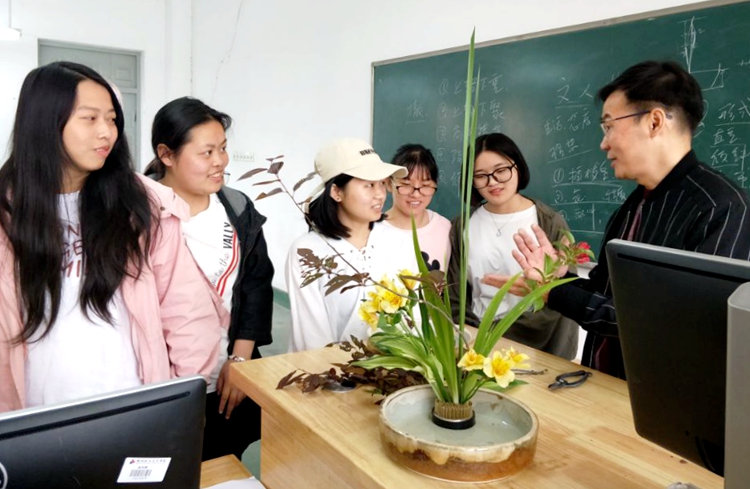 园艺技术专业邀请应国宏大师为学生上文人花道课
