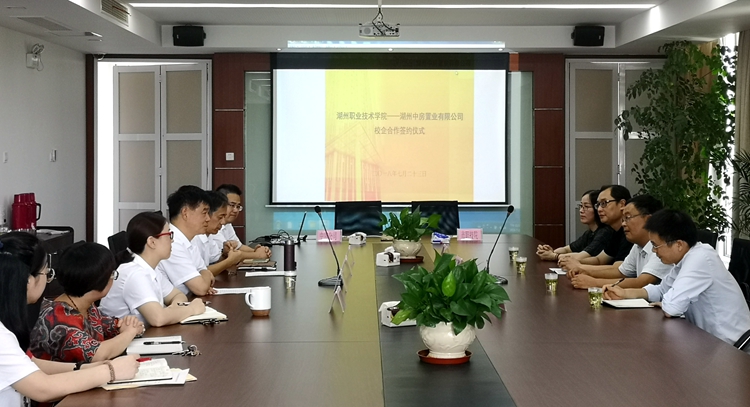 7月23日,学校与湖州城市投资集团湖州中房置业有限公司签订校企合作协议。副校长李起潮、湖州中房置业有限公司董事长谢宏杰、总经理吴笑元、学校建筑工程学院负责人等参加签约仪式。