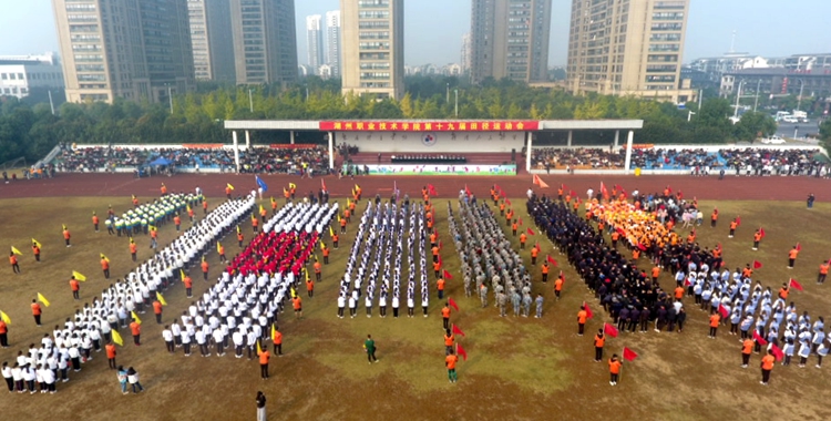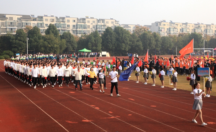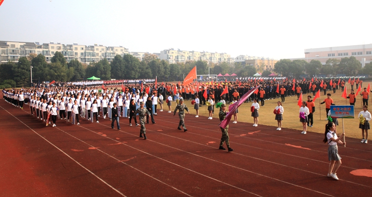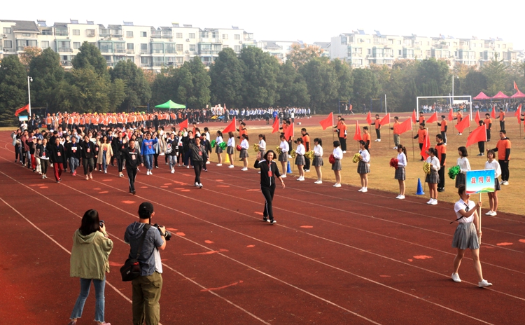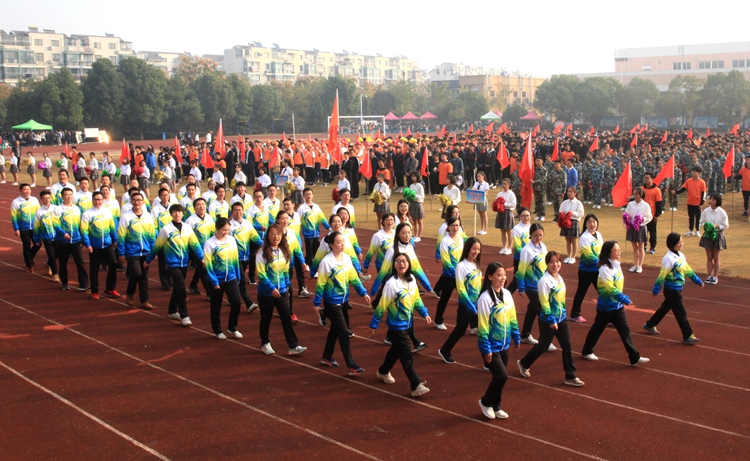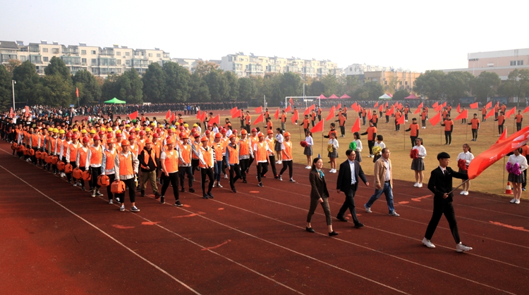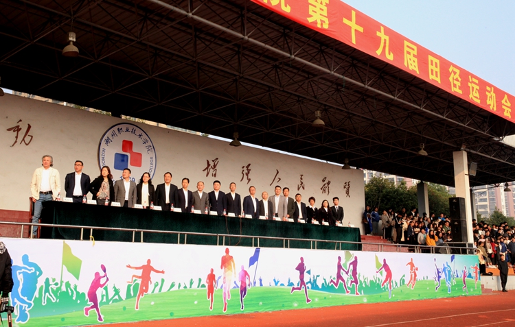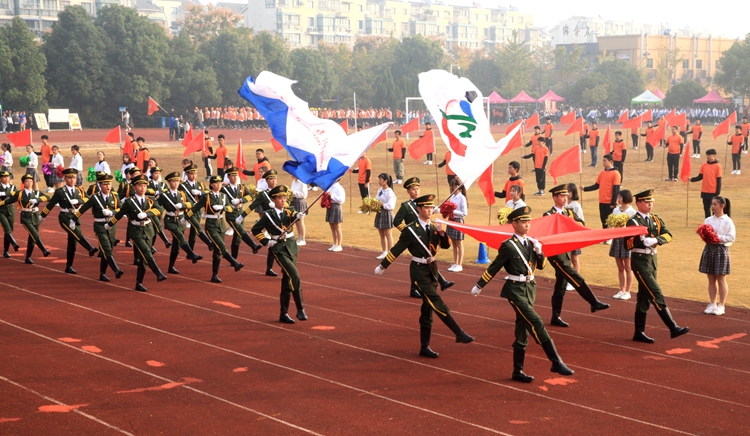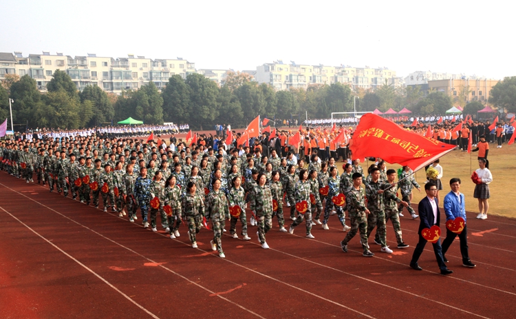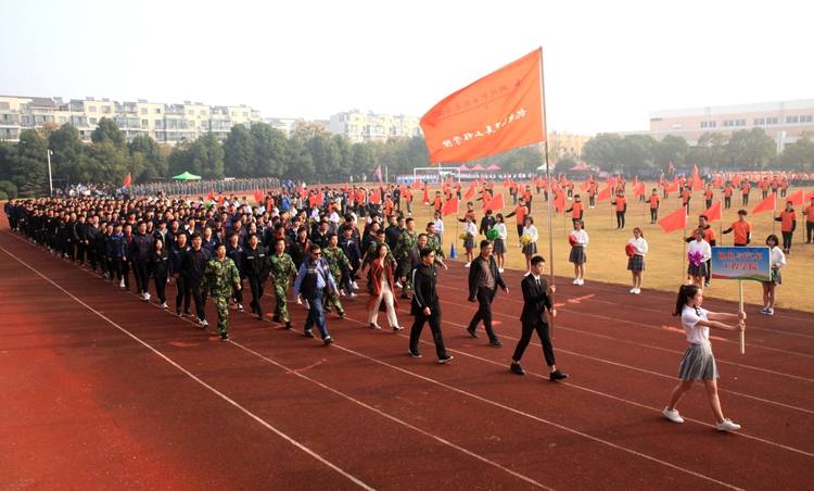 10月24日上午,学校第十九届田径运动会在田径场胜利开幕。伴随着激昂的运动员进行曲,护卫队手持国旗、校旗、运动会会旗率先走过主席台,随后,裁判员组成的方阵、6个二级学院代表队、教职工代表队依次入场。矫健的步伐,整齐的队形,响亮的口号,昂扬的气势,创意的展示,充分展现了湖职院人健康快乐、积极向上的精神面貌。