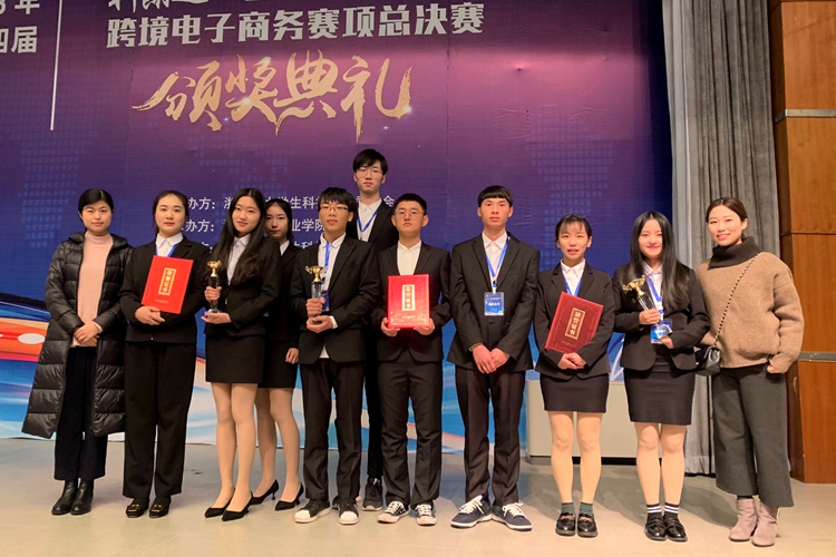 本届大赛由浙江省大学生科技竞赛委员会主办,浙江金融职业学院承办。大赛自今年5月份启动,分为跨境电商模拟赛、出口实战和现场答辩三个环节。来自全省40多所高职院校的代表队参加了此次比赛,学生通过在亚马逊、速卖通、敦煌网、eBay和Wish平台上运营真实店铺,比拼跨境电商的理论和实操水平。最终,在王群飞、李琦、陈晔、杨楚婷老师的精心指导下,由施瑜杨、徐寅、应叶楠三位同学组成的Wish一队和由陆银萍、陈姜琪、张建刚三位同学组成的Wish二队获得了团体一等奖;由卢柳辰、蔡洁琦、贺琰三位同学组成的敦煌一队获得了团体二等奖;由吴晨阳、张莹、陈寅聪三位同学组成的敦煌二队获得了单项一等奖。