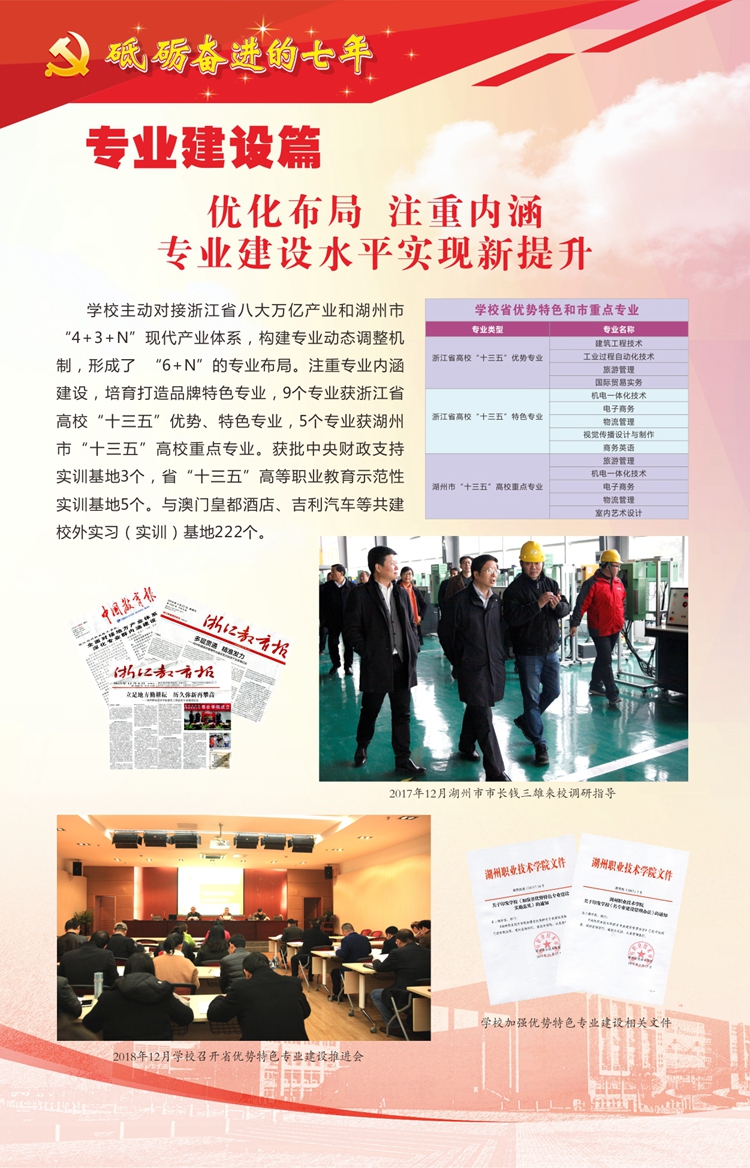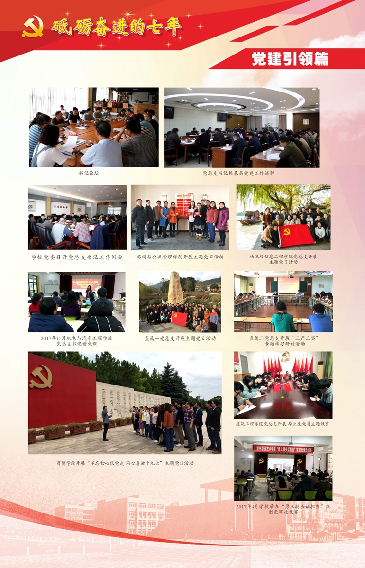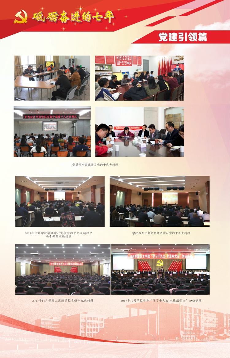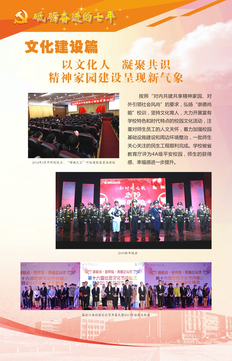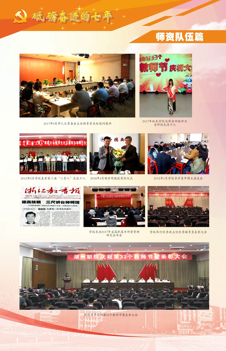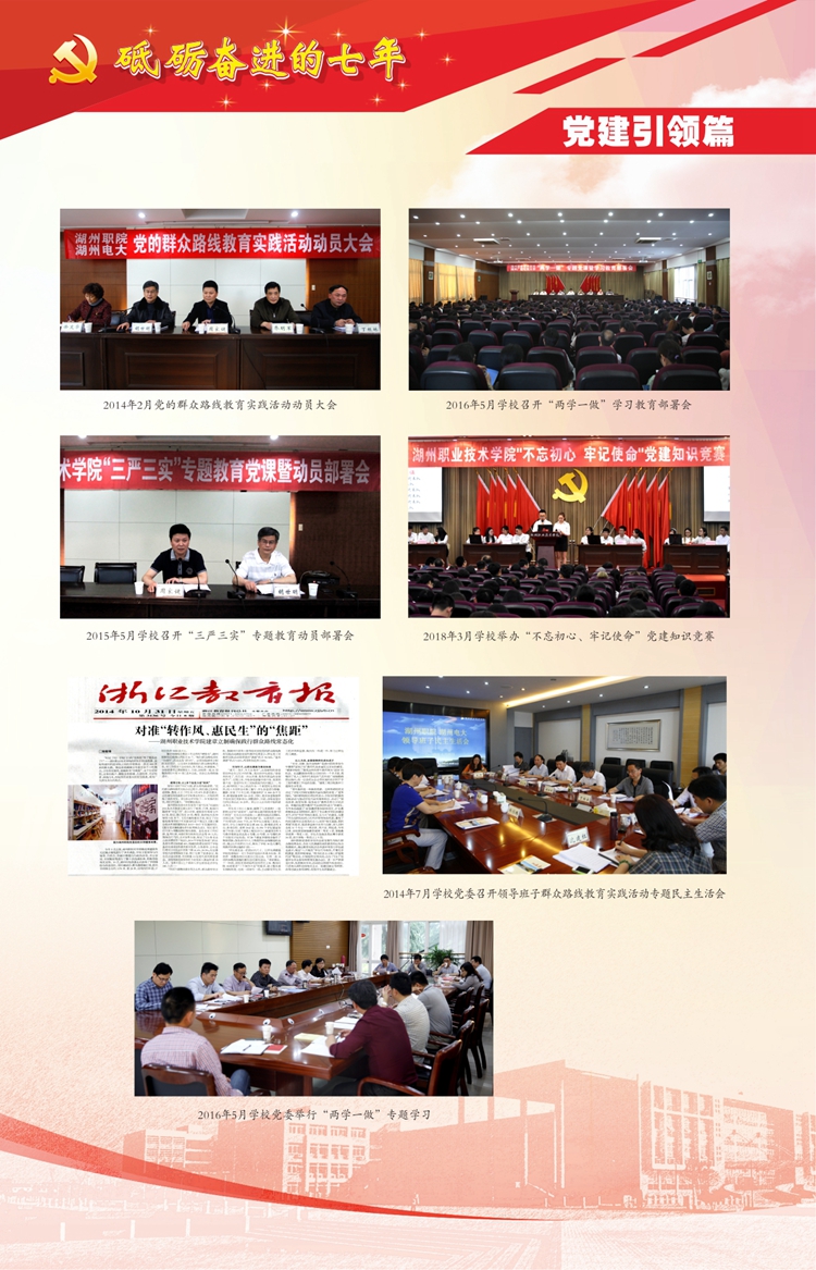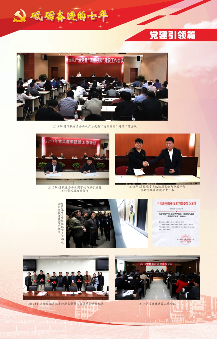 编者按:为庆祝学校第二次党代会胜利召开,党委宣传部特举办“砥砺奋进的七年——喜迎学校第二次党代会办学成就展”,从总览全局、党建引领、专业建设、人才培养、师资队伍、文化建设、社会服务、合作办学等8个篇章与全校师生共同回顾七年来学校事业改革发展的变化和成就,共同展望新时代学校发展的美好未来。我们相信,只要全体湖职院师生不忘初心,砥砺前行,奋力赶超,高质量建设区域性高职名校的“湖职梦”一定能实现!总览全局篇 党建引领篇 专业建设篇、 人才培养篇 师资队伍篇 文化建设篇 社会服务篇 合作办学篇 第一页 <<上一页 下一页>> 尾页 页码 1/10