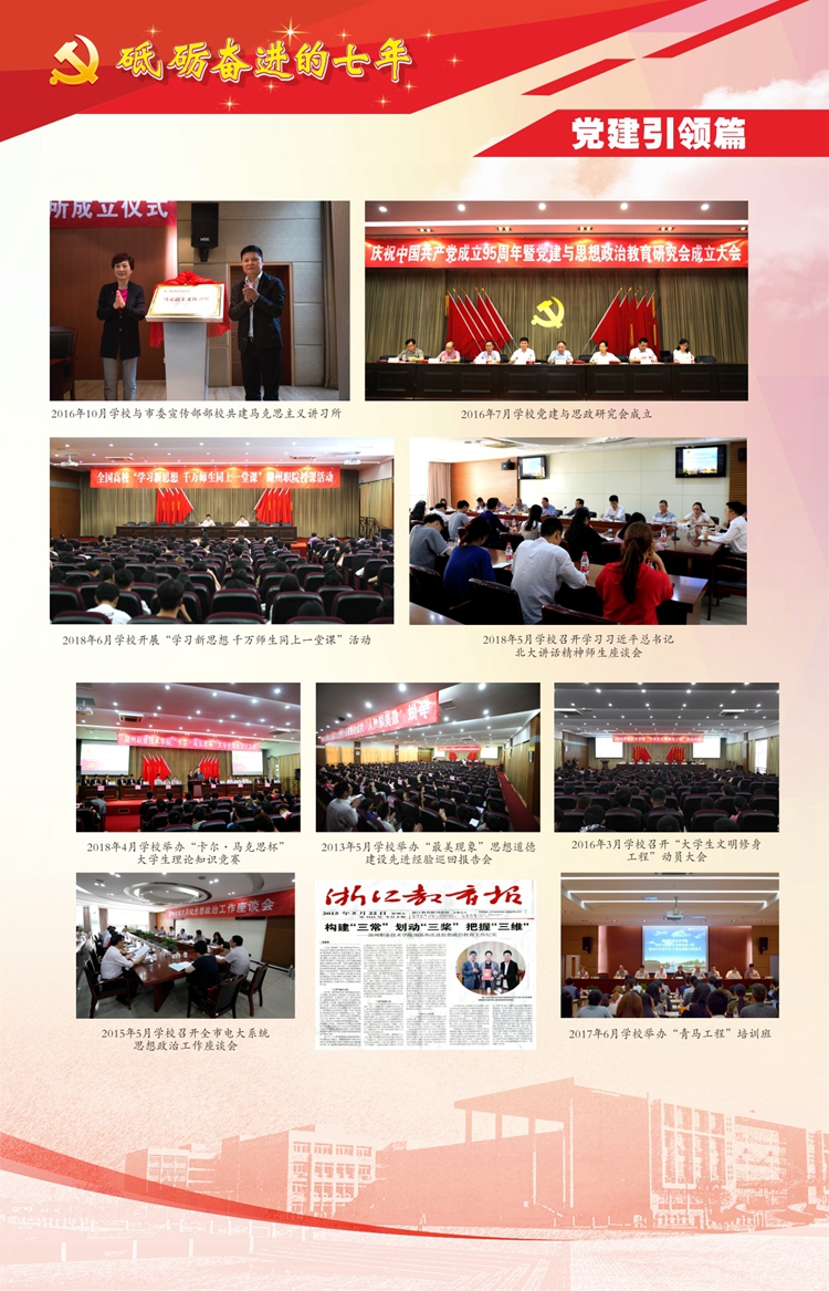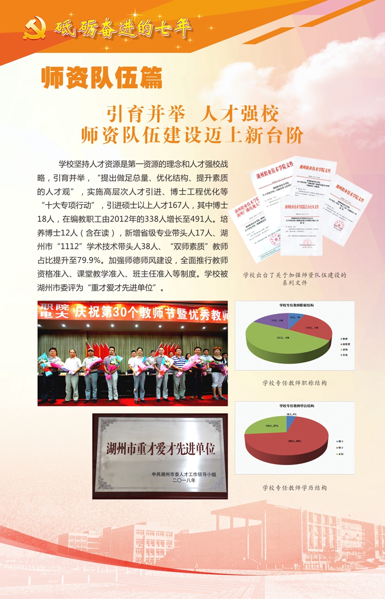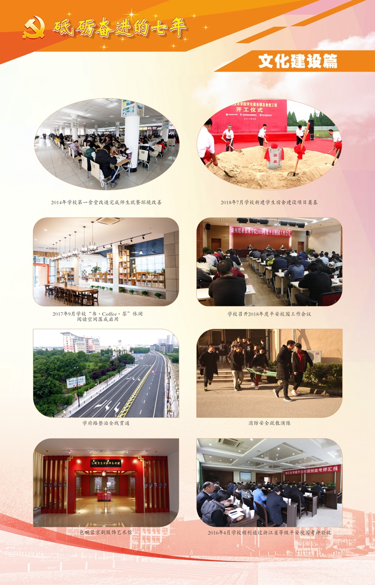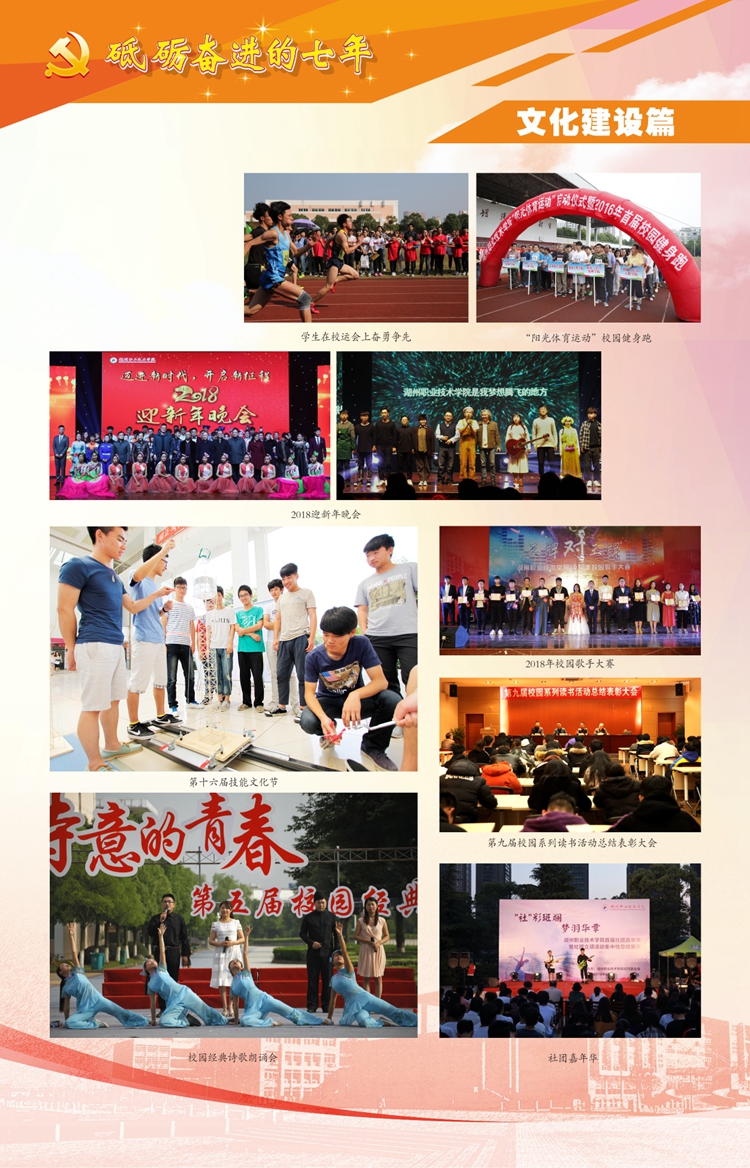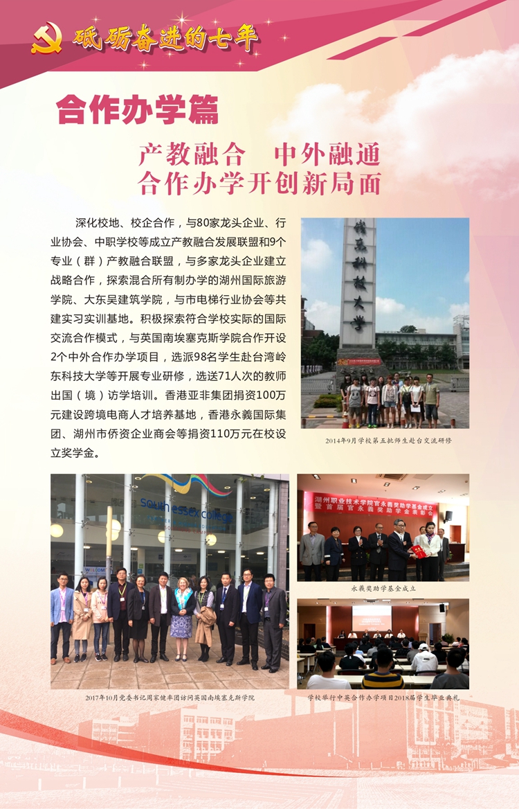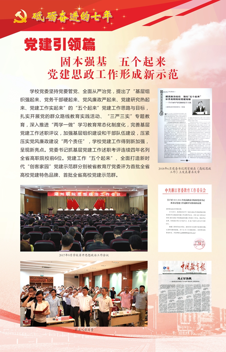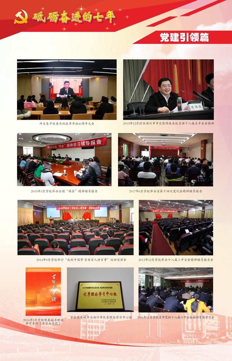 编者按:为庆祝学校第二次党代会胜利召开,党委宣传部特举办“砥砺奋进的七年——喜迎学校第二次党代会办学成就展”,从总览全局、党建引领、专业建设、人才培养、师资队伍、文化建设、社会服务、合作办学等8个篇章与全校师生共同回顾七年来学校事业改革发展的变化和成就,共同展望新时代学校发展的美好未来。我们相信,只要全体湖职院师生不忘初心,砥砺前行,奋力赶超,高质量建设区域性高职名校的“湖职梦”一定能实现!总览全局篇 党建引领篇 专业建设篇、 人才培养篇 师资队伍篇 文化建设篇 社会服务篇 合作办学篇 第一页 <<上一页 下一页>> 尾页 页码 1/10