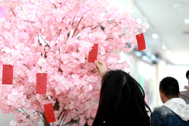 在艺术设计学院艺术长廊,“心愿树”承载着每一个女生的心愿,发扬大学生关爱女性的社会责任感和传递爱心、乐于奉献的正能量。