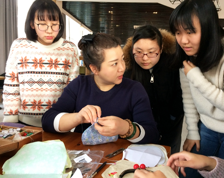 在学校图书馆咖啡书吧,商贸与经济管理学院“巧手团队”的女生们开展了“传统工艺芳华传承”手工包制作展演,通过喜闻乐见、参与实践的方式进行传统针绣艺术文化传播,让更多的人加入到传统文化弘扬中来,一个个做工精美的手工包实现了文化基因与现代社会的完美融合,赢得了师生们的一片赞赏。