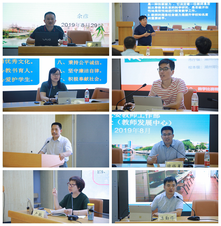 本次岗前培训活动以新时代高素质专业化师资队伍建设为导引,强化思想性、针对性和适用性。三天的集中培训,学校邀请了人事处、教务处、科技处、学工部等相关职能部门负责人分别对学校人事管理制度、教学规范与课程教育设计、科技创新及服务能力提升、学生管理及班主任工作等内容作了专题辅导。同时,按照国家相关政策要求,结合教师发展需要,邀请了湖州师范学院舒定志副校长作了“师德师风教育”专题报告,引导广大教师以德立身、以德立学、以德施教。全体参训教师还进行了入职宣誓。