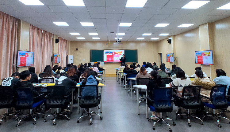 学校第十一期青年马克思主义者培养工程暨2019年度大学生青年骨干培训班——党的十九届四中全会精神宣讲报告会在教师发展中心开讲。校马克思主义讲习所所长、思政教研部主任张合营副教授作专题辅导讲座,学习宣传贯彻党的十九届四中全会精神,把全校青年学生思想统一到全会精神上来。校团委负责人、校团委工作人员、青马班全体学员聆听了宣讲。