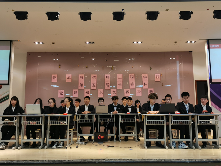 为推进青年大学生深入学习习近平新时代中国特色社会主义思想和“党史、新中国史、改革开放史、社会主义发展史”,引导全院青年大学生坚定不移跟党走,12月21日晚,物流与信息工程学院在一号楼三号报告厅举办“青年学四史、青春跟党走”为主题的第五届党建知识竞赛决赛。学院学生工作负责人、学院团委书记、辅导员以及学院党员之家全体成员、入党积极分子代表、各班团支书等参加了决赛。