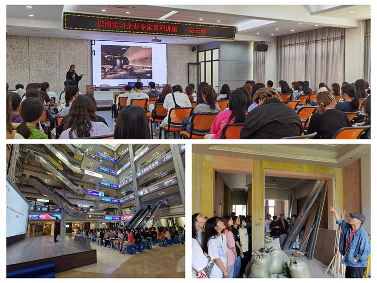 任课教师借助“外力”和资源,精心设计“识岗”的各个环节,完善该课程的考核方式。通过开展专题讲座,同学们更加全面而深入的了解了室内设计行业的发展历史和现状,以及室内设计师这一职业的能力要求和工作特点,对自己三年的学习目标与定位更加明晰,也对自己将来的职业发展与规划更具信心;通过在湖州第六空间国际家居市场的“门店化”教学,同学们更为直观与近距离接触到了新材料的特点与应用,以及当前最新的家居产品设计风格与款式,极大拓宽了同学们的设计思维与视野;通过在国贸仁皇某排屋工地现场的校企教师合作教学,从方案讲解到图纸分析,从设计深化到施工对接,同学们更为深刻的体会到了方案在技术性和落地性上的重要性,任何一个室内空间的最终实现都离不开技术的支撑和贡献,技术贯彻了设计的整个过程,从材料的使用、细部的构造,到设备的处理、专业间的协调。
