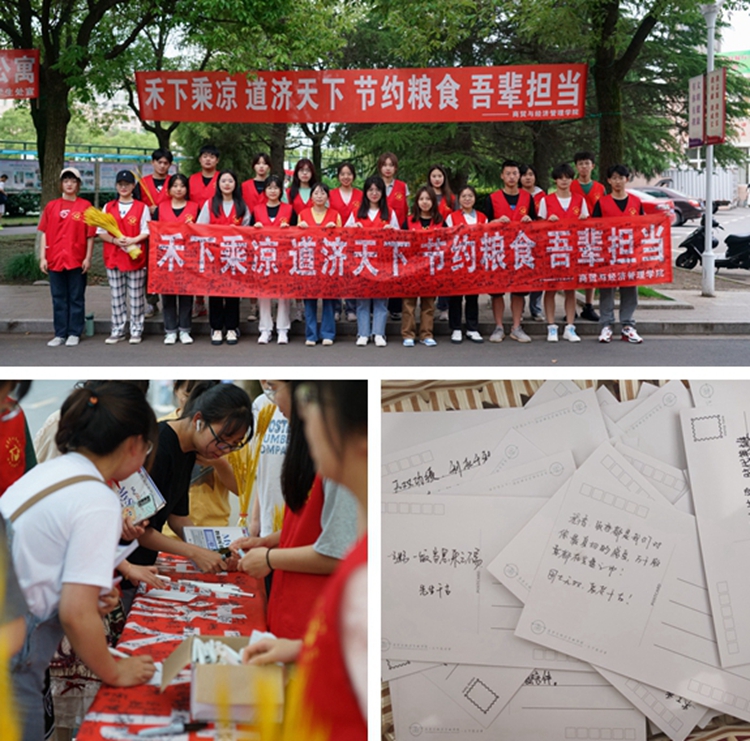 为深入贯彻党中央关于“厉行节约,反对浪费”的指示精神,树立“粮食也是一种紧缺资源”的爱粮节粮的理念,增强学生节约粮食的意识,5月27日,商贸与经济管理学院小苔花工作室组织资助对象在桃李餐厅和恬园餐厅开展了“禾下乘凉,道济天下,节约粮食,吾辈担当”的专题活动。
